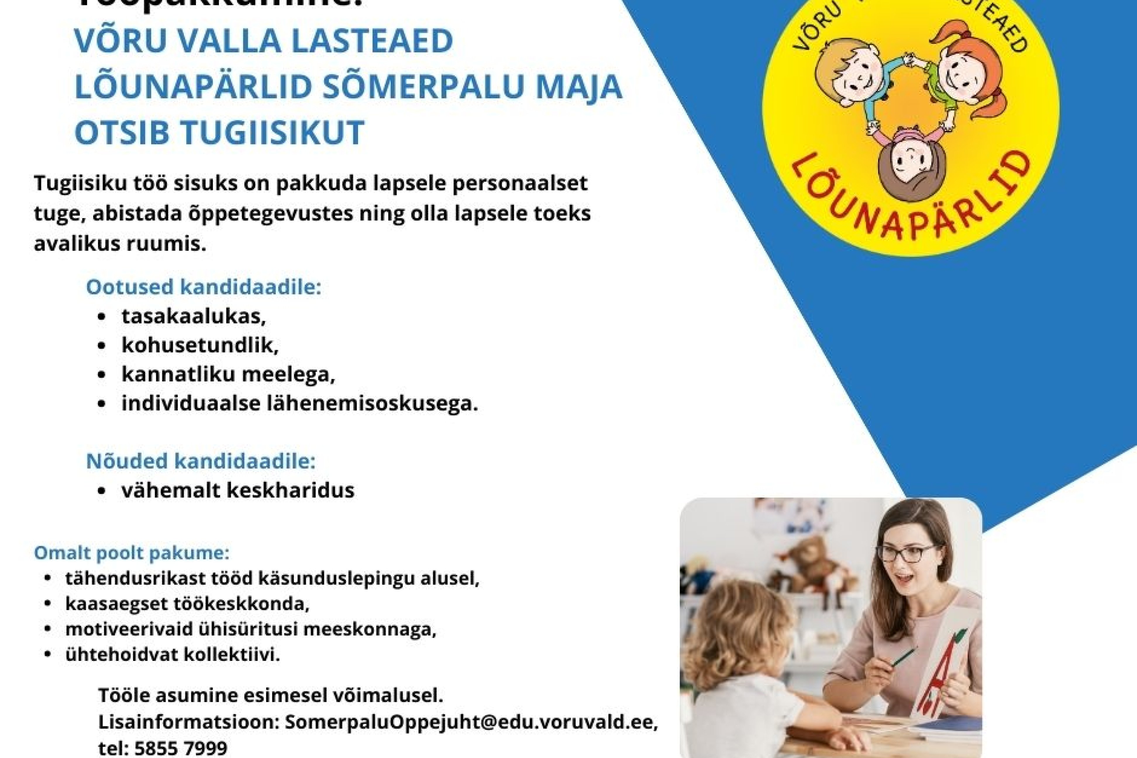 Tööpakkumine- õppe- ja arendusjuht Loomise kuupäev 20.10.2025 Autor Anneli Laursoo-Dunaiski Väimela maja tähistab 80. aastapäeva. Loomise kuupäev 08.10.2025 Autor Anneli Laursoo-Dunaiski Võru maakonna haridustöötajate ja täiskasvanuhariduse tänusündmus Loomise kuupäev 29.09.2025 Autor Anneli Laursoo-Dunaiski Erasmus+ projekt Sõmerpalu majas Loomise kuupäev 23.09.2025 Autor Anneli Laursoo-Dunaiski Vaata rohkem